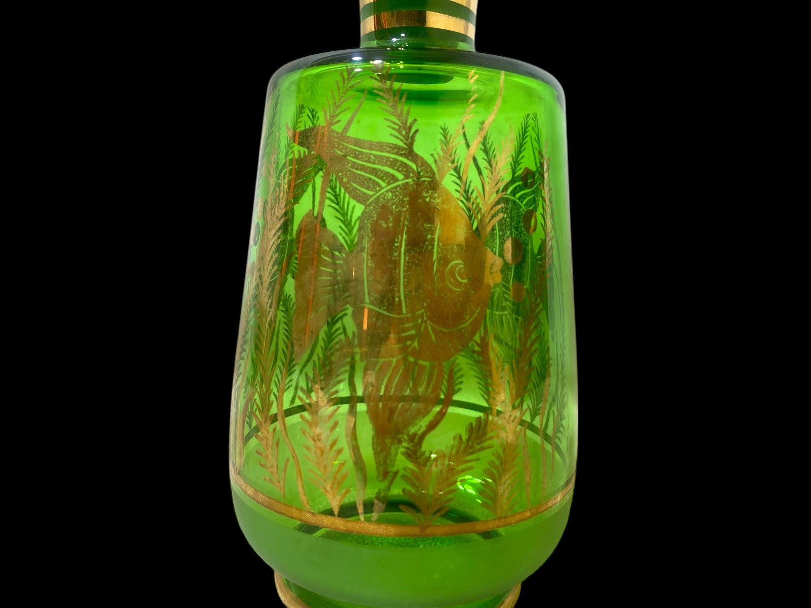 An original and old Czech crystal set including 1 carafe and 6 crystal glasses. Beautifully decorated with dense, fine hand-painted enamel artwork highlighted with water-gold detailing. A rare, elegant collectible set perfect for display or special occasions.