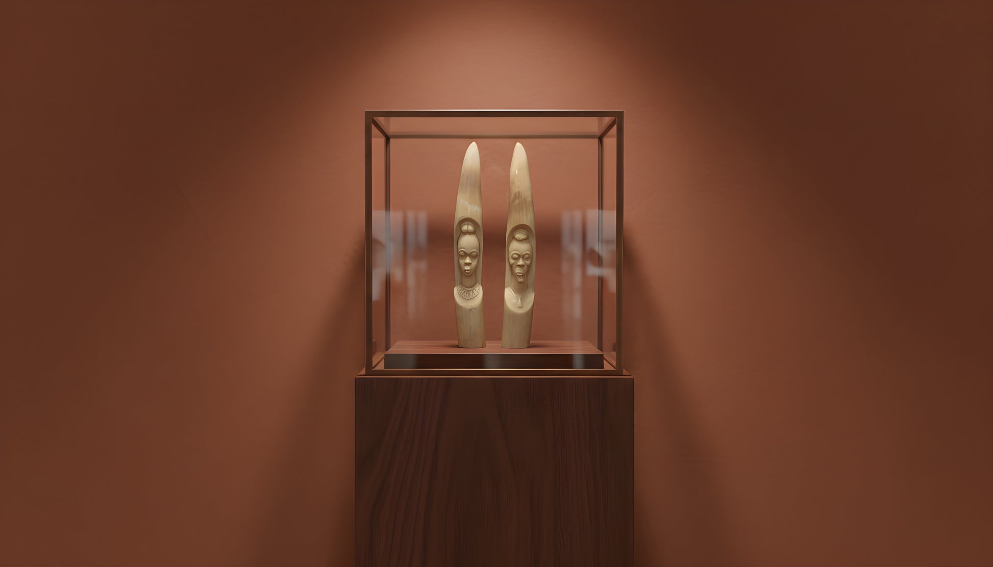 A matched pair of authentic African ivory elephant sculptures, crafted from natural ivory and fully hand-carvedwith fine, detailed workmanship. The sculptures display exceptional artistry and traditional African craftsmanship, making them a rare and elegant collectible set.