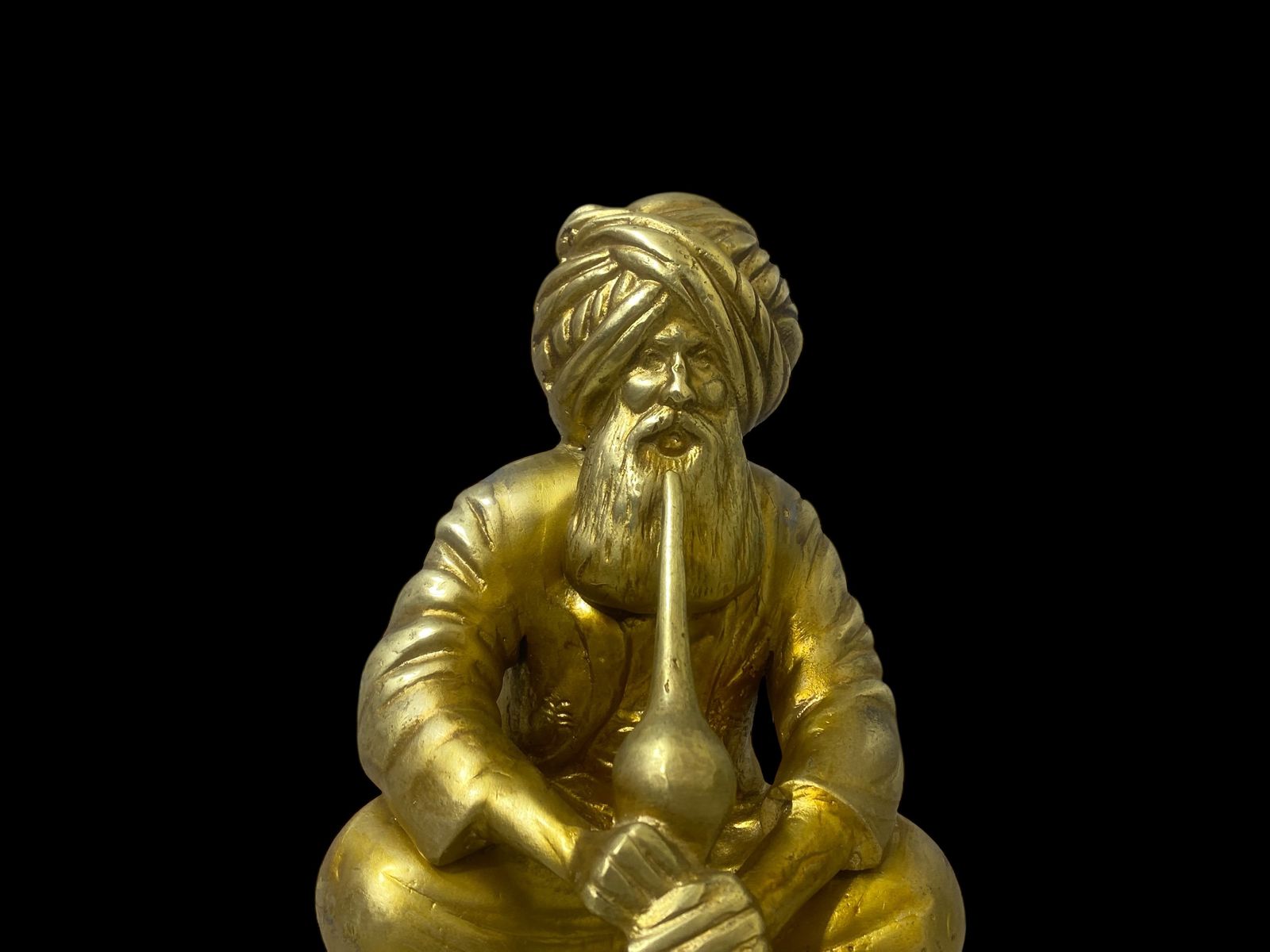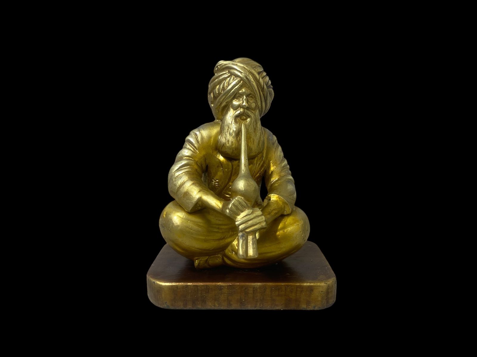 An original and old Indian statue made entirely of bronze, featuring fine hand engraving, delicate craftsmanship, and highly detailed features. Comes mounted on a thick, heavy solid wood base.