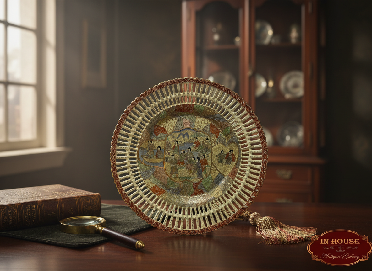 Antique Chinese Satsuma Reticulated Round Plate – Filigree Edge – Hand-Painted Scene