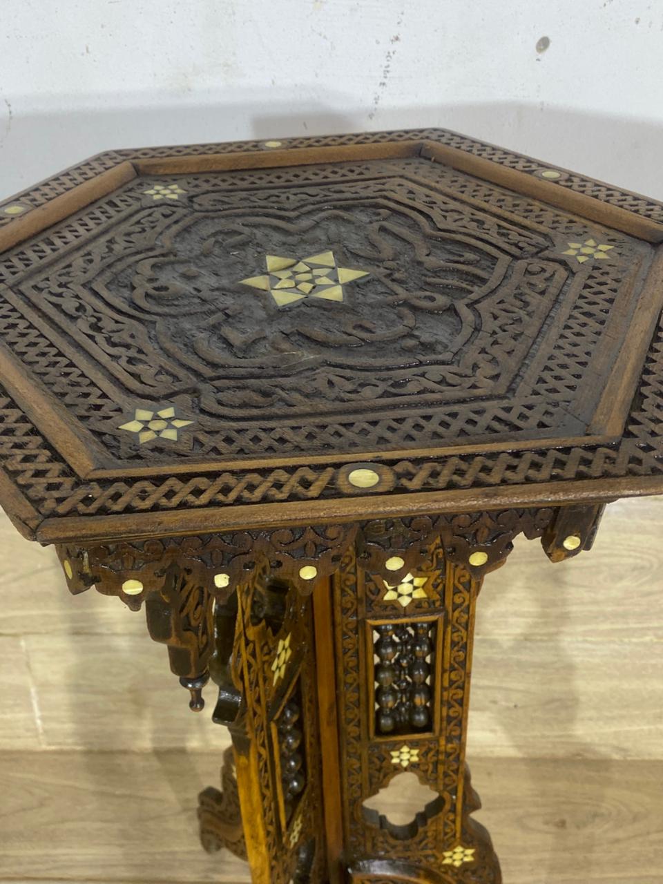 Rare Ottoman Arabesque Mahogany Side Table with Hand-Carved Calligraphy and Natural Ivory Inlay